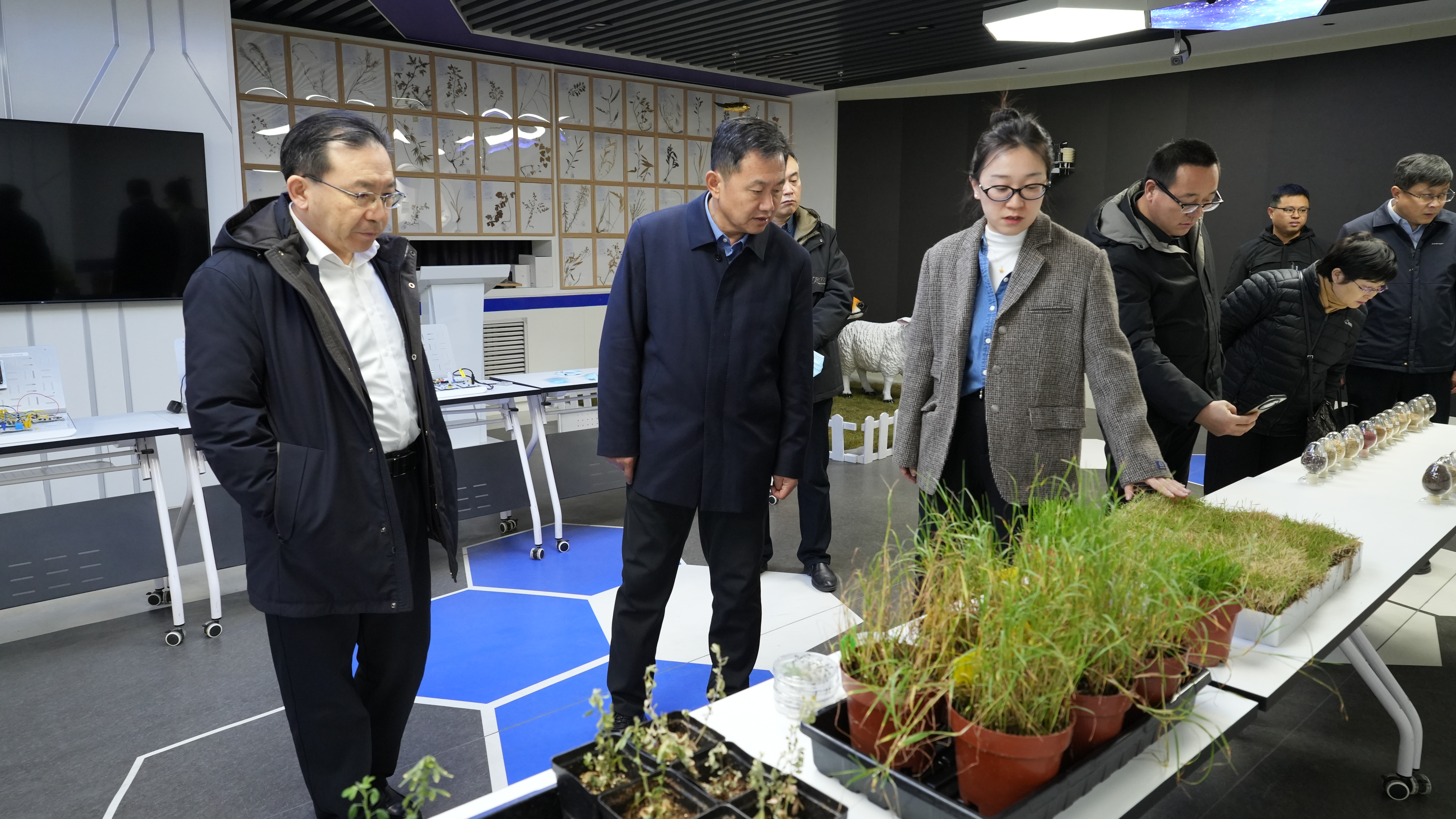 会后,校领导陪同客人一行参观机电工程学院、特种食品研究院和草业学院。