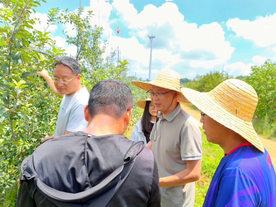 暑期是农作物生长、管护的关键阶段,高温、病虫害等挑战接踵而至。专家们深入田间地头,开展“点对点”技术指导与培训,为各类作物丰产丰收筑牢防线。国家苹果产业技术体系岗位专家张玉刚教授团队,走进烟台、青岛等地果业企业,针对‘福星’等苹果新品种开展生产技术指导和夏季管理培训,助力企业提升种植水平。国家花生产业技术体系岗位科学家邹晓霞教授奔赴莱阳、即墨等花生主产区,在荚果膨大关键期,围绕水肥精准调控、病虫害绿色防控等技术开展培训,提出“补钾增钙、控氮促稳”的分期水肥策略,为应对高温干旱、提升结荚率提供支撑。国家苹果产业技术体系岗位专家练森教授会同烟台多地农技人员,赴海阳宇果庄园指导病虫害防控,针对早期落叶病和免套袋苹果桃小食心虫蛀果问题,现场讲授发病规律与管理技术,为200亩果园筑牢“防护网”。山东省玉米产业技术体系岗位专家姜雯教授团队,赴青岛、烟台、聊城等地指导夏玉米滴灌水肥一体化技术,并通过线上培训吸引逾62万人次学习,推动良技良法落地。山东省小麦产业技术体系岗位专家穆平教授前往潍坊高密、诸城等地,与当地农技人员、种粮大户交流,针对性解决小麦生产难题,30余名从业者从中受益。